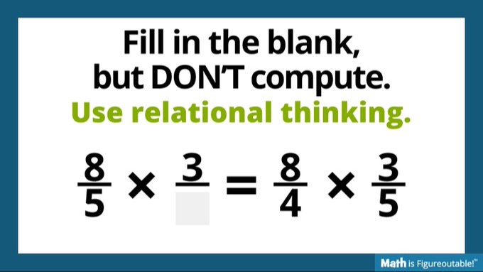 In these problems, the goal is for students to reason and decide whether a statement is true or false, or to fill in the blanks or a problem without computing each side.